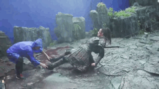 在花絮里也看得到,大多数的场景都是吴磊亲身完成的,冒着雨、吊着威压、又重重摔在地上——