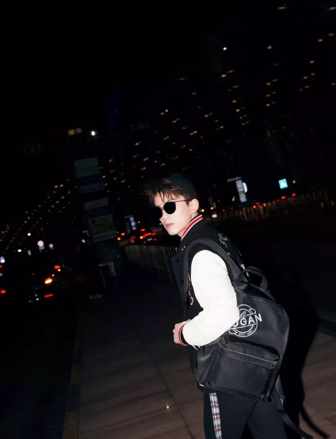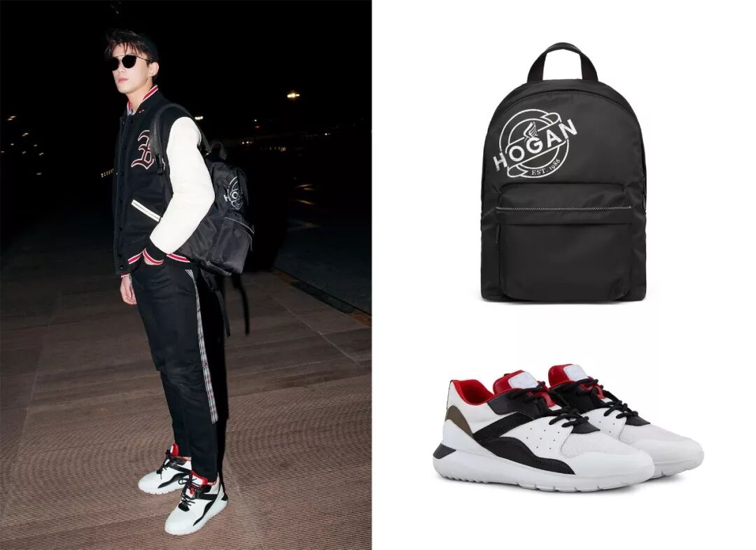 “棒球服+运动裤“的休闲穿着再添上 HOGAN 的 Interative Cube 运动鞋以及黑尼龙双肩包,没有刻意的追求时尚,却轻松好看。