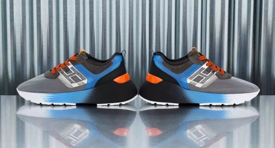 H383复古跑鞋则以撞色为亮点,大胆又吸睛, 该款奢潮运动鞋款鞋侧HOGAN Logo的标志设计若隐若现,并以醒目的阳光橙、耀眼黄和电光蓝搭配鞋面,复古考究却不会哗众取宠。