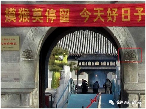 白云观的山门,建于明代,虽历经火灾战乱,面貌依旧未改,在正门斗拱东侧的浮雕底部,刻着一只小小的石猴。