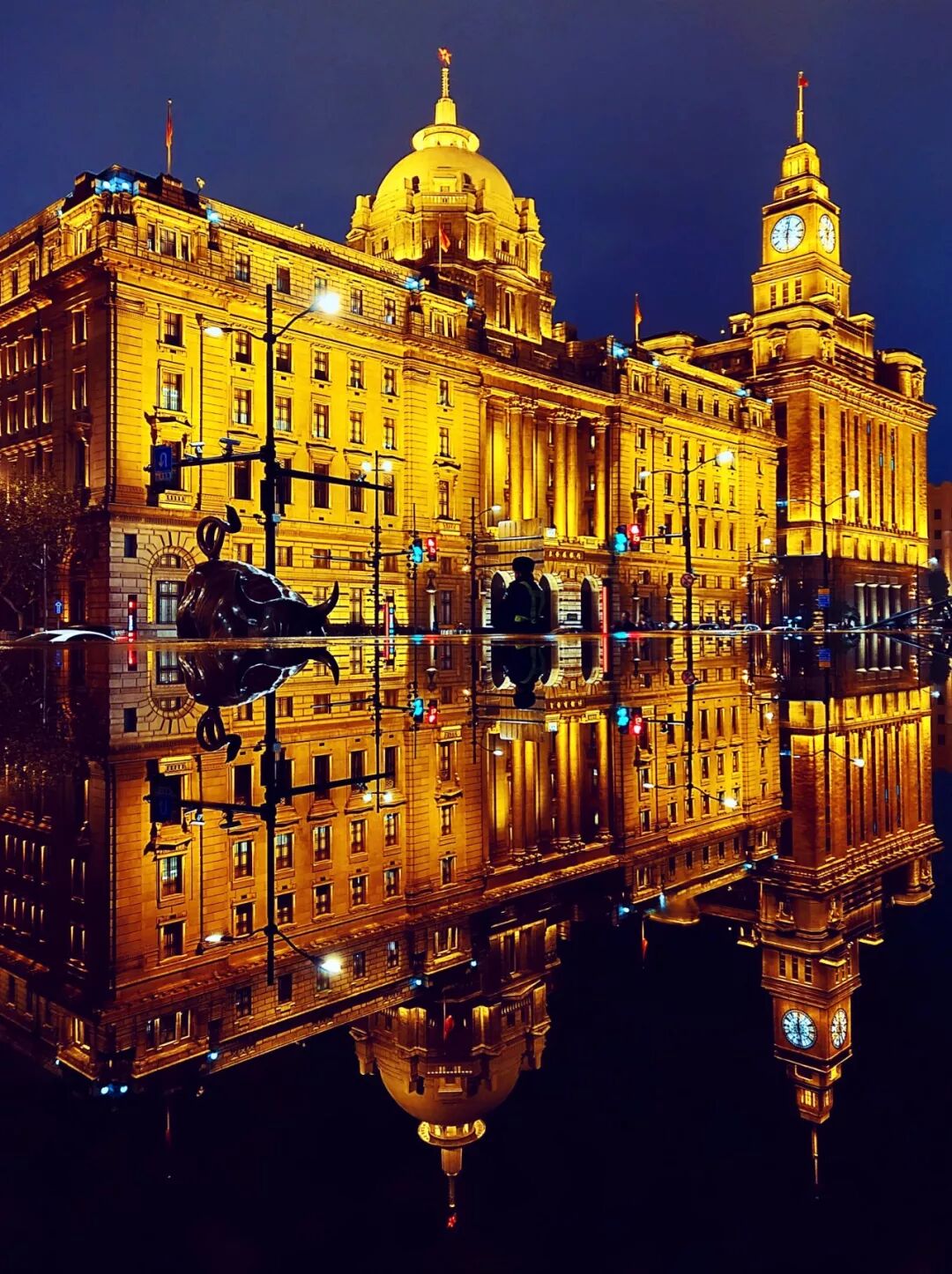 水面的倒影与建筑的外形成了互补关系,构图与光线都很完美!