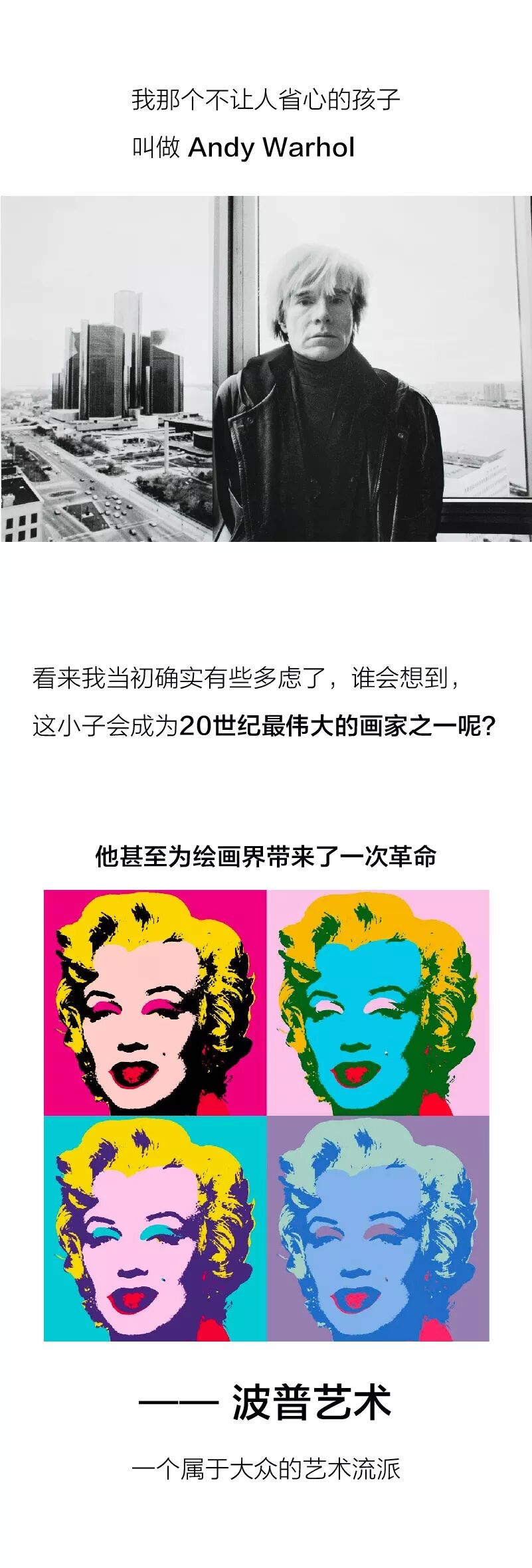 安迪·沃霍尔从小就希望自己能站在聚光灯下,他小时候的梦想是成为电影明星,总是对着镜子演戏,还给自己取了个土嗨的艺名:“晨星”(不过一想到他当时只有7岁我就原谅他了,毕竟我7岁还只会玩泥巴),最让我羡慕的是他爸妈,爸爸负责赚钱养家,妈妈负责开口就夸……一家五口全靠爸爸安德烈微薄的工资,过得其实很辛苦,但安迪想要的相机、电影放映机、影星见面会门票和各种明星周边,家人总是全力支持。安迪·沃霍尔8岁的那场大病给他打击很大,学校里的孩子给他起外号“红鼻子”,他变得自卑且敏感,压力过大的他选择疯狂地吃甜食,于是像充了气一样变胖。后来,没有变成电影明星的安迪·沃霍尔拍了很多地下电影来“实现”自己的童年梦,其中有一部叫《吃》(Eat),全程就是一个人在吃东西,大概是对小时候那的那些“变故”的回应吧。