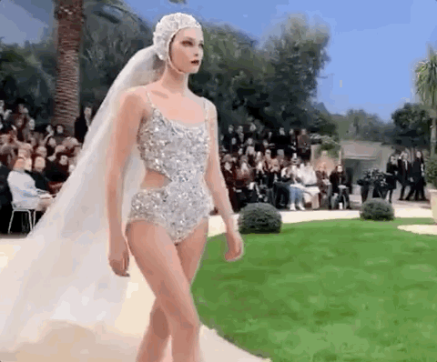 高定新娘 Vittoria Ceretti 穿着满是水钻的泳衣闭秀,也是如此的自由、美丽、令人难忘。