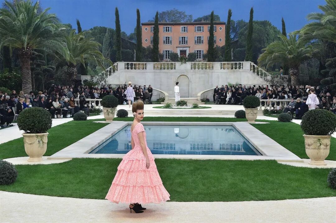 在 Karl 为 Chanel 编织的最后一场秀里,秀场被复刻成了他在蒙特卡洛的故居 —— La Vagie,宛若华美的地中海花园,充满了美妙的度假感。