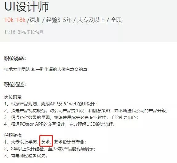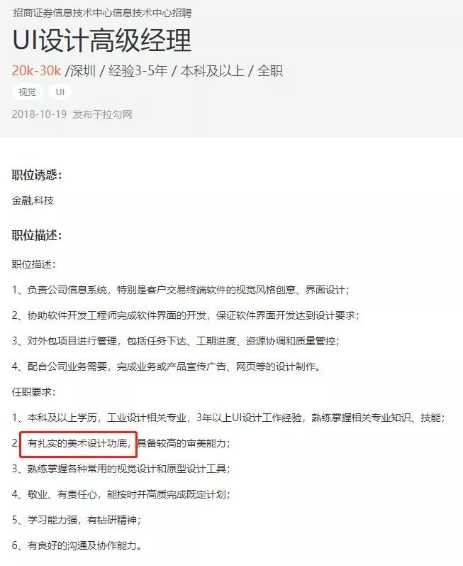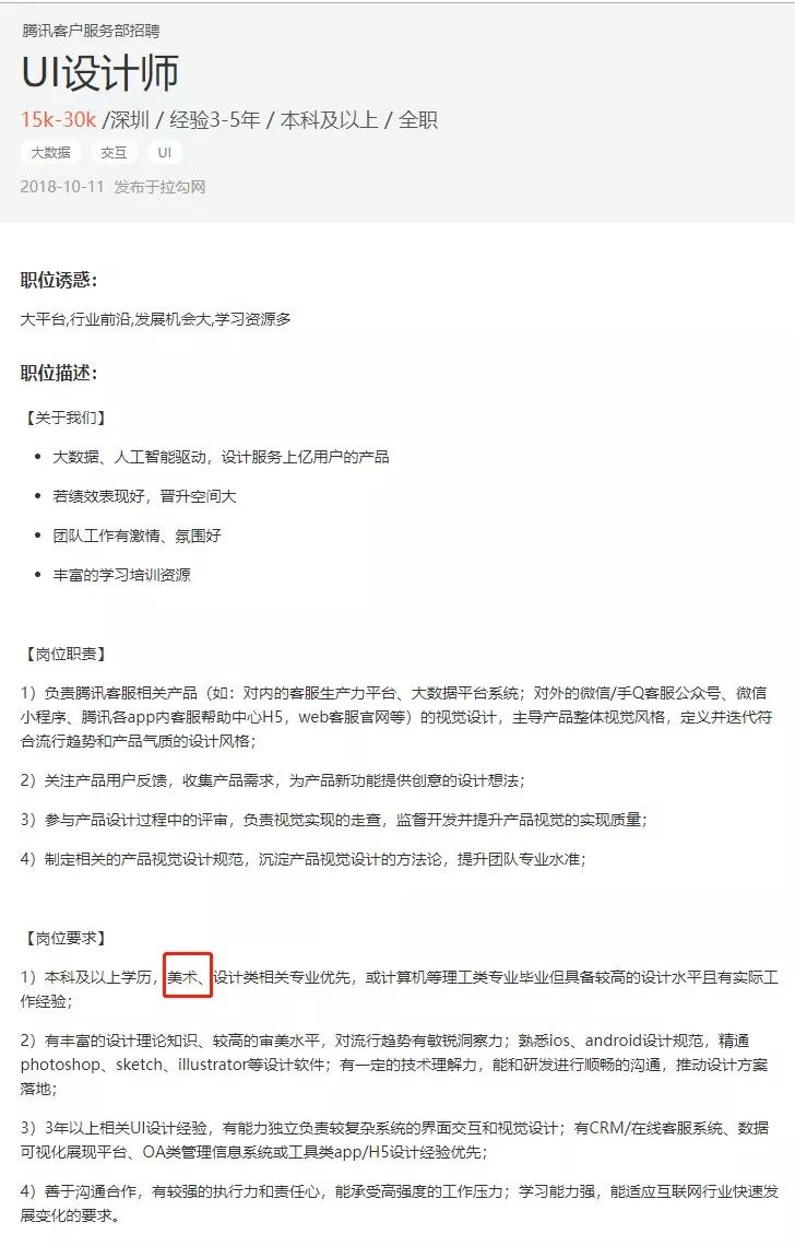 今天我随手在招聘网站上搜索一些深圳相对高级一点的设计岗位,例如资深设计师,例如设计主管,经理什么的。果然,没有任何一个可以脱离美术2字。