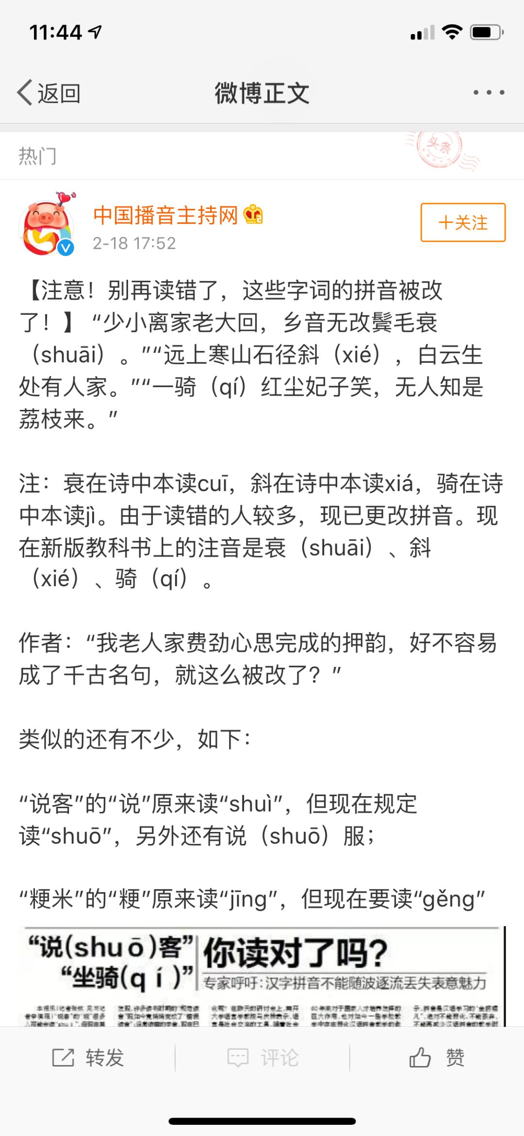 为什么会有人提出要改呢?原微博是这么写的:由于读错的人较多,现已更改拼音。