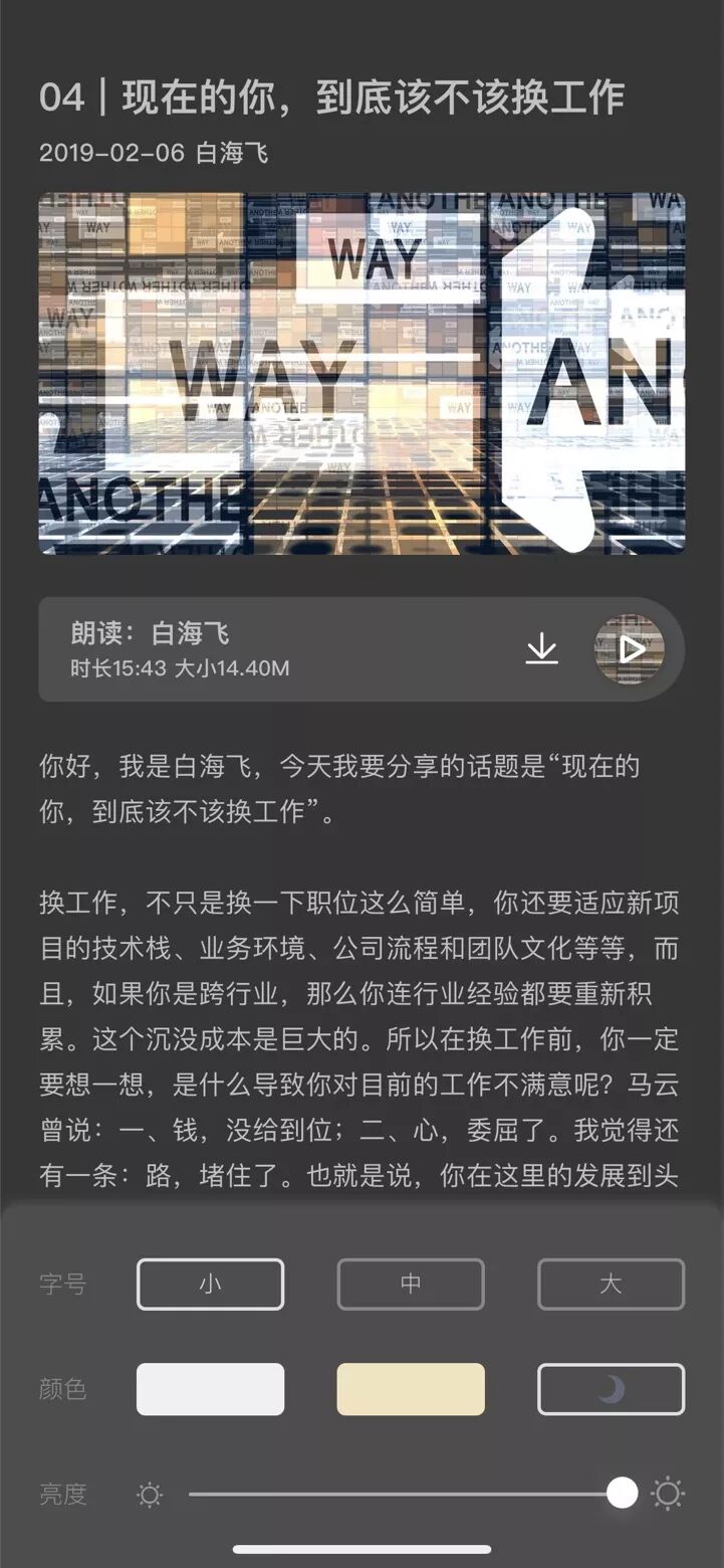 春节后开工一周了,很开心。终于可以投入工作了,如何判断你是否喜欢当前的工作状态呢?很简单,如果你假期里都期待开工,那就是了。本周极客时间 iOS 版发布了一个更新,我们在阅读文章时提供了更多主题模式,这对于热爱阅读和学习的用户来说,是个很大的体验改进,我自己也非常喜欢,安卓版下周就会上线。