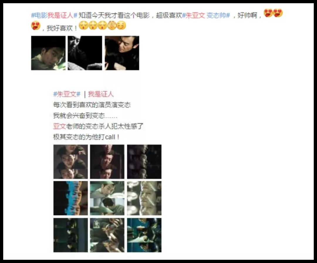 再然后就是《我是证人》电影的热映,让在里面饰演变态杀人狂的朱亚文又火了一次。