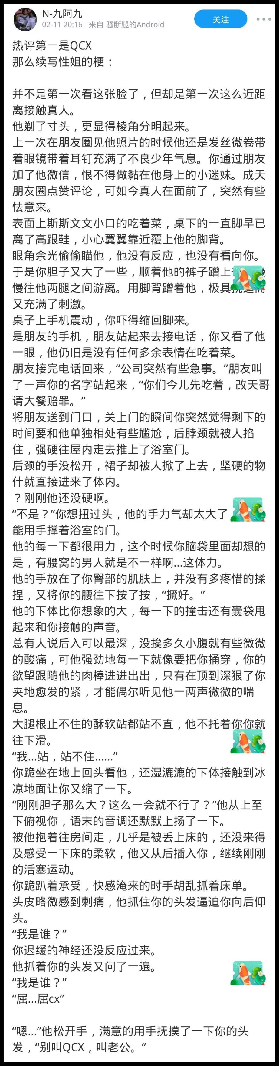 这么短的有颜色的文案,羊饭煎怕大家看不够,所以在此分享才华横溢的微博网友@N-九阿九的扩写版——