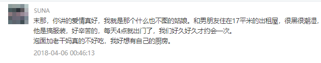 SUNA是17年关注我的读者,是个“不图房不图车”的姑娘。