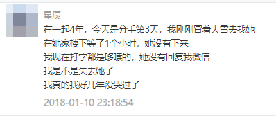 去年1月份的深夜,男生在女朋友楼下求复合。