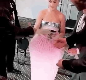 事实证明了,高定礼服并不是那么好穿的。