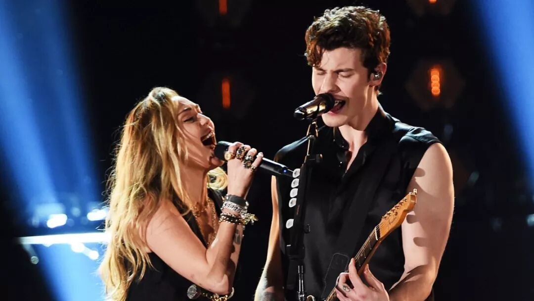 Miley Cyrus搭档萌德Shawn Mendes,表演了歌曲《In My Blood》。