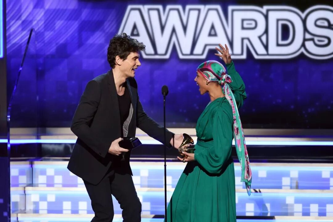 但是 John Mayer 作出了一个决定,他私下将奖座分成两半,上面的部分刻上字送给Alicia Keys,自己则留下底座,希望与对方共享这个荣誉。