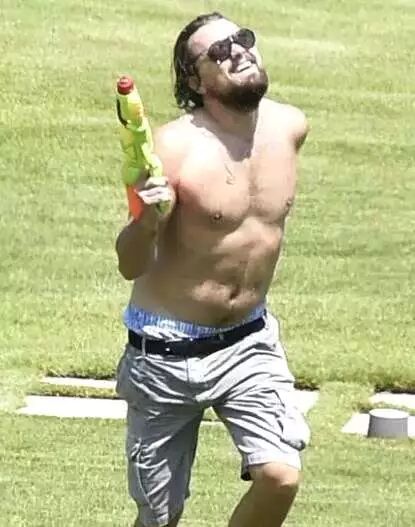 比如说这张小李子的照片,他的眼神是向着。。。。。。