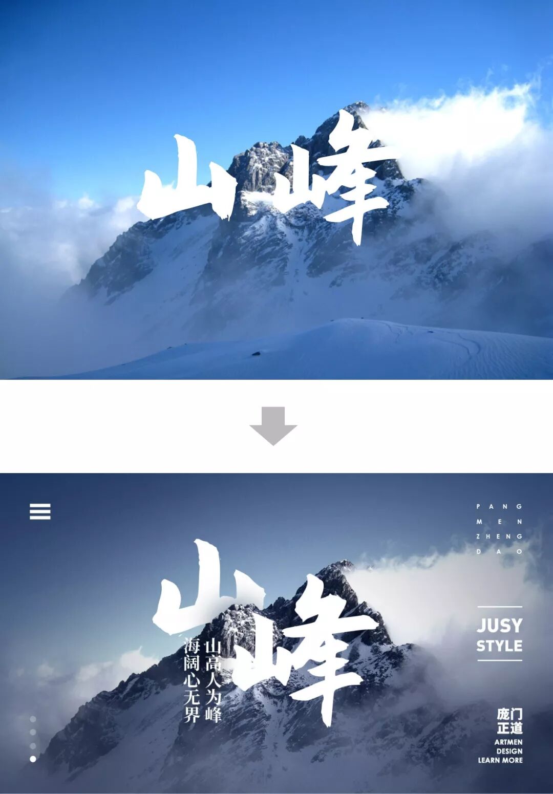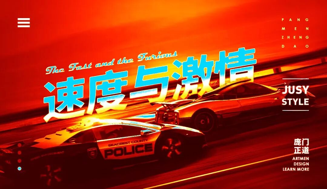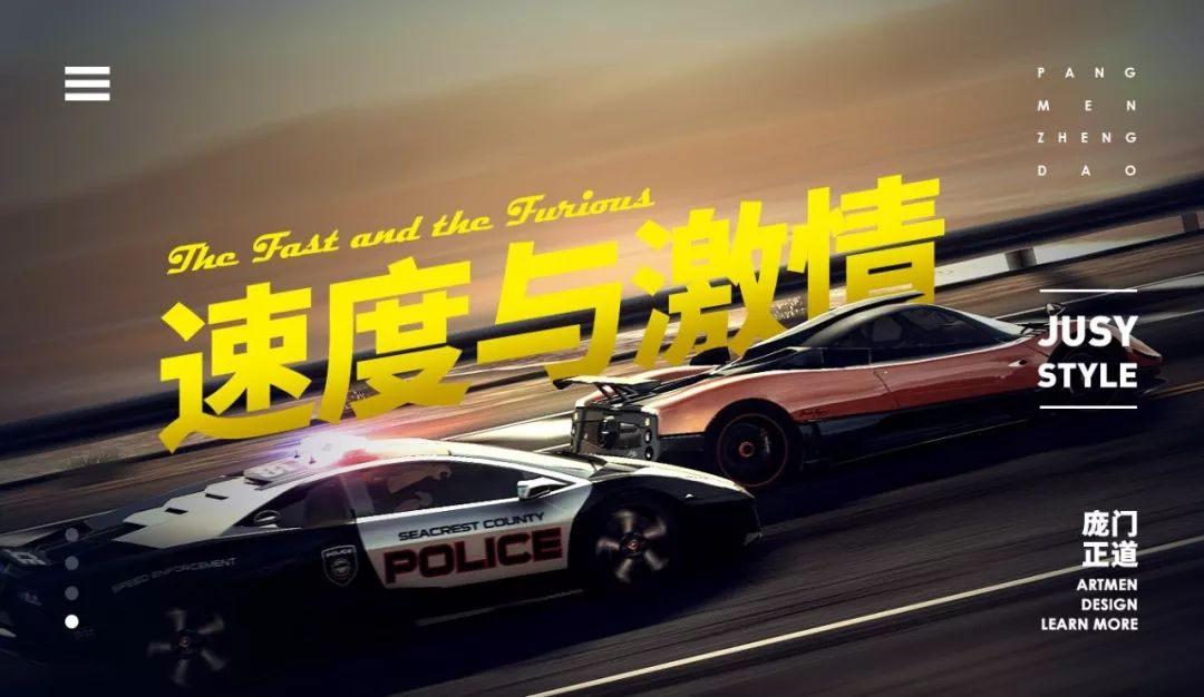 怎么样?是不是很简单,标题与车子的方向保持一致时,既使得标题与画面融为一体,也强化整个画面的视觉冲击力。