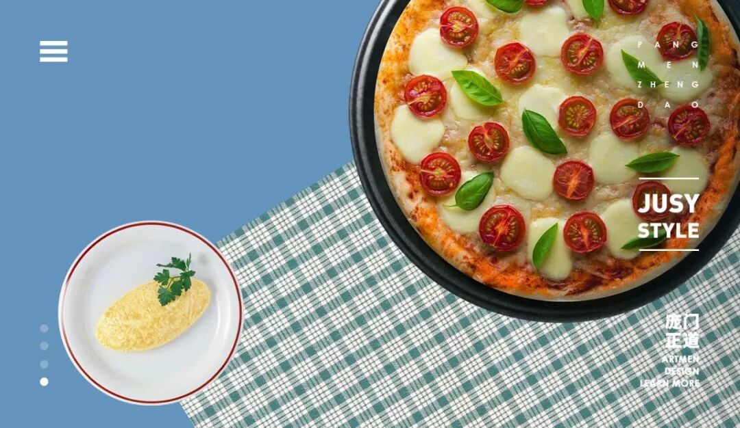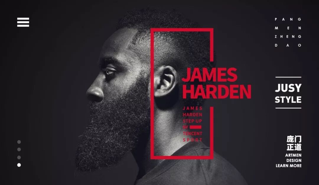这个其实很简单,就是强行的在页面上加一个几何形状的标签,然后将文字置入。要点就是标签的颜色与背景图拉开对比,提升画面的视觉表现,让用户的眼睛聚焦到标签上。