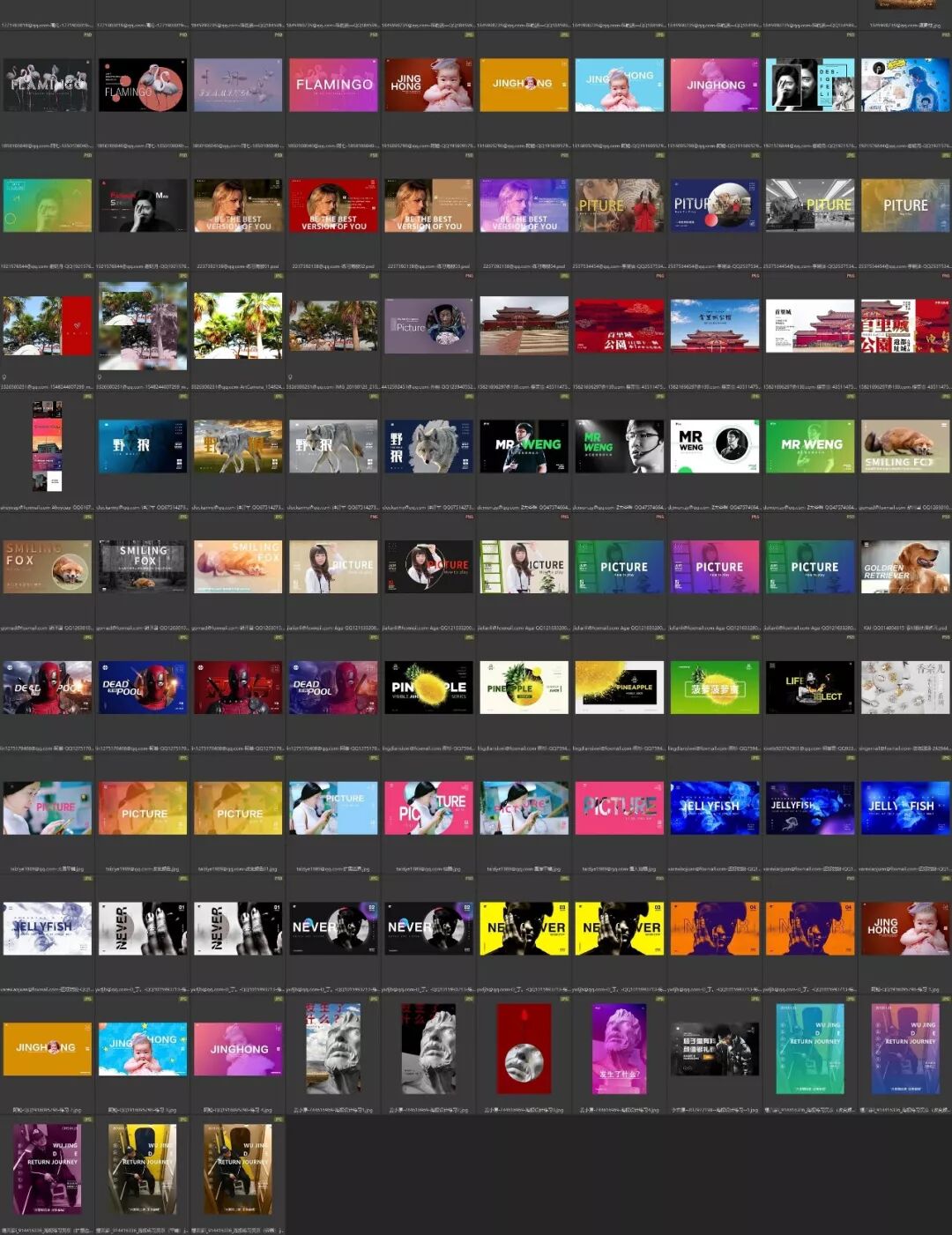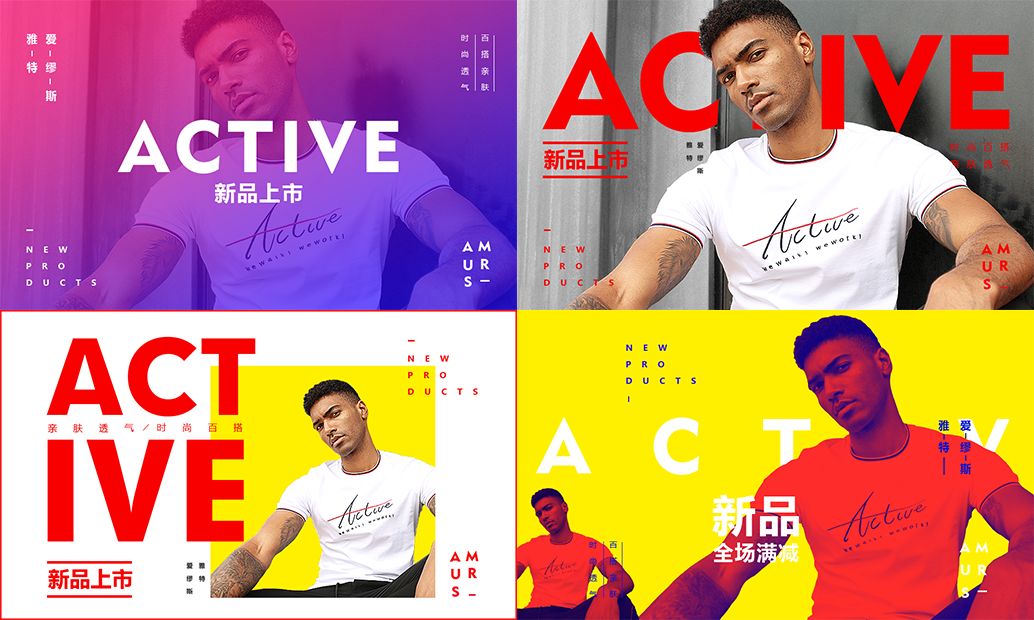 用同一张素材,出四个不同版本的设计。