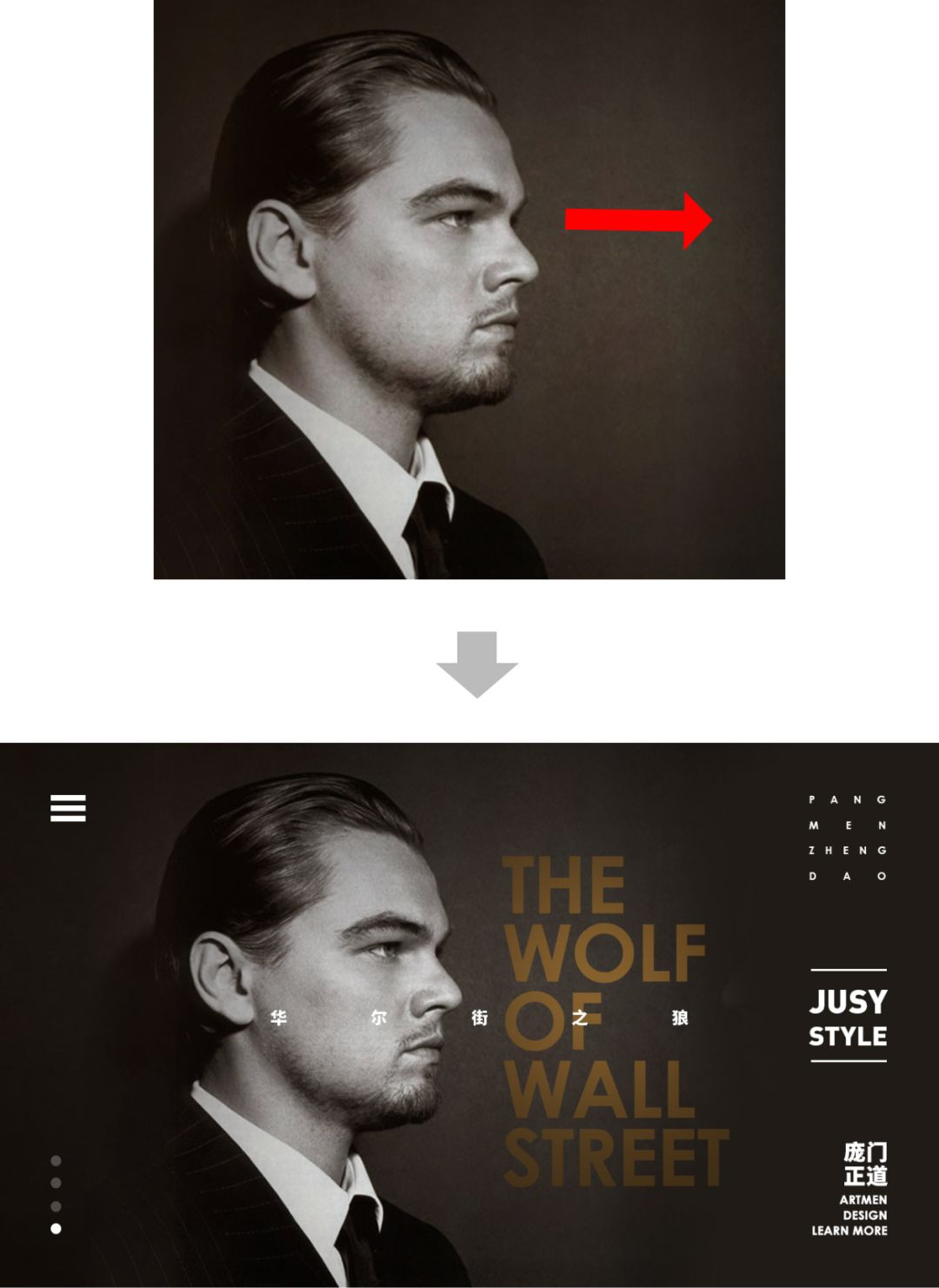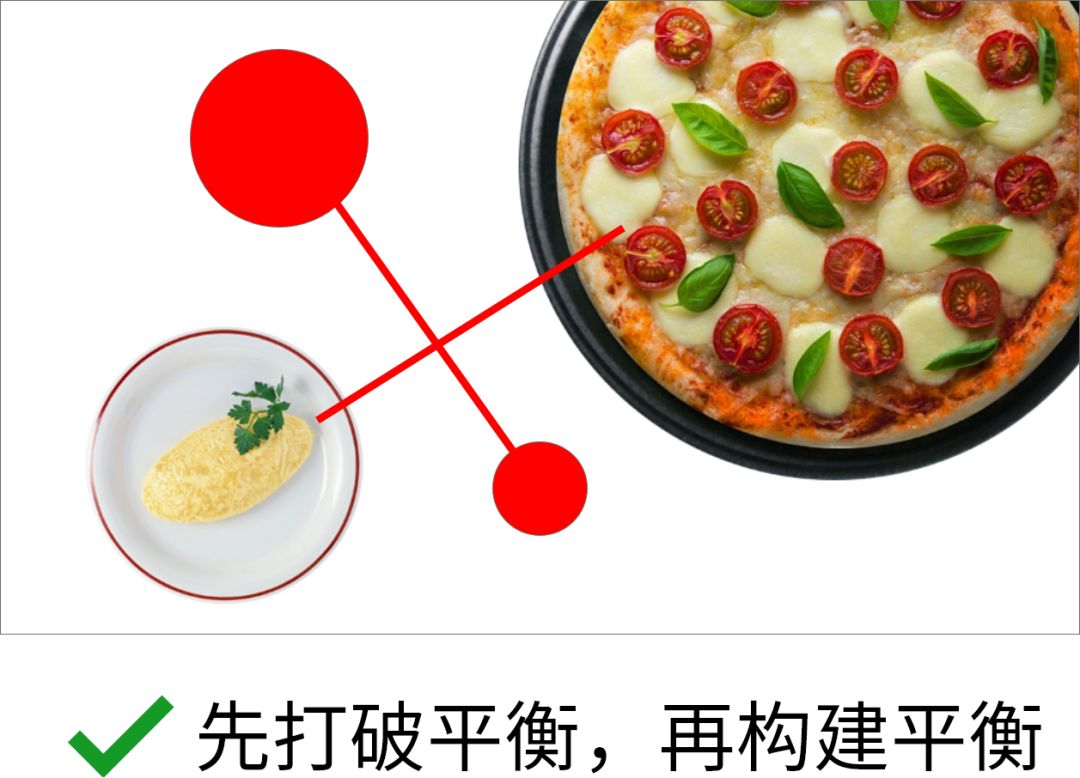 我们可以先通过大小变化来制造视觉落差,这样导致的不平衡,再通过标题来让画面重新达到平衡状态。