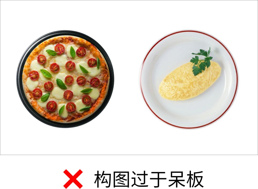 如果我将它们并排对等的摆放,那视 觉上确实是平衡的,但带来的问题就是构图太呆板了,因此我们需要打破一下。