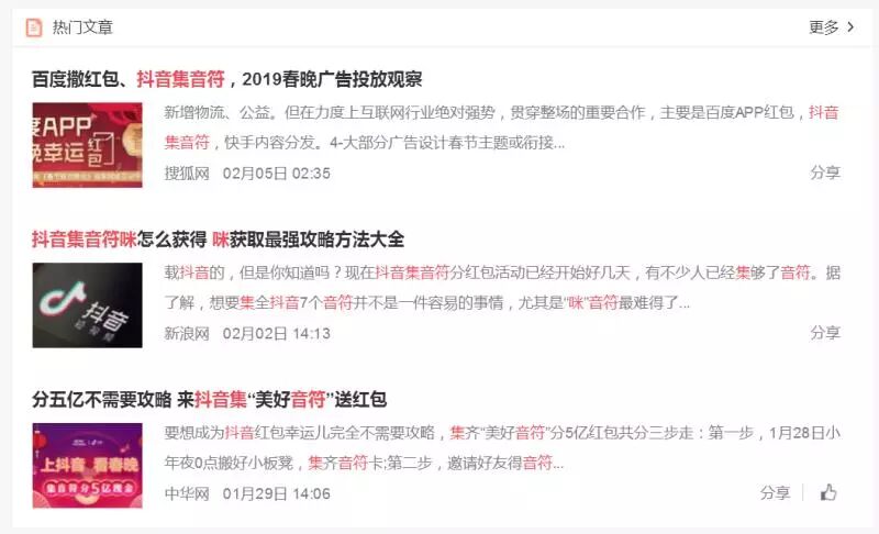 春晚的大量曝光,将活动热度引向高潮。相较于普通的品牌曝光,抖音以集音符卡的活动作为引子,不论是节目硬植入还是小品软植入,都更有的放矢。