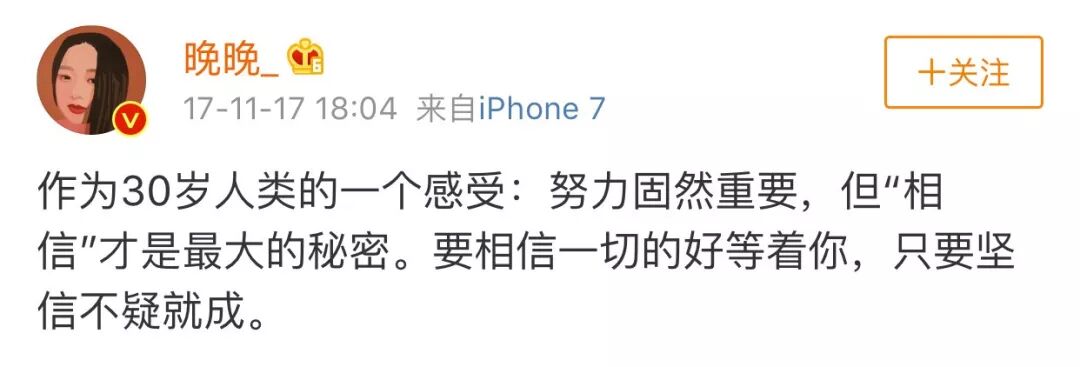 反倒是晚晚,一骑绝尘,从当年不被看好的“大脸肉鼻”一路挺进了上流圈,用网友的话——其他两位“拍马也赶不上了”。
