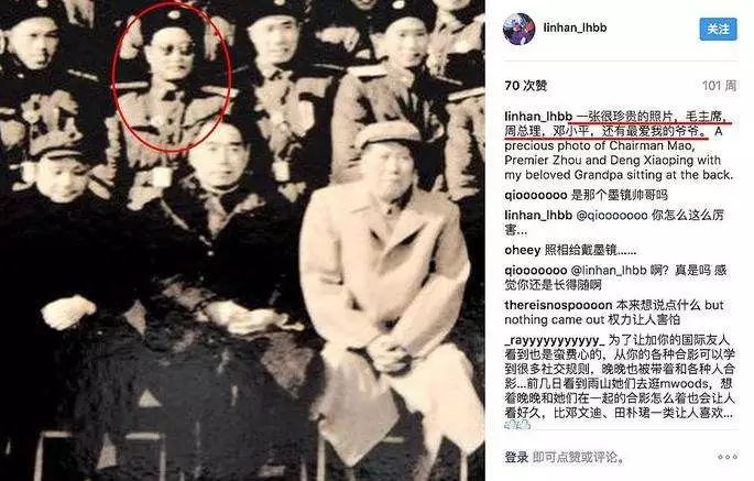 据资料显示,林瀚家涉及“政、商、文”三界,家世显赫。具体哪位大人物没有详细信息,但林瀚曾经晒过一张照片: