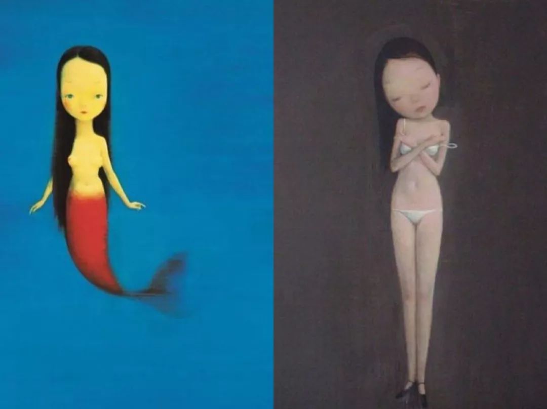 晚晚身材很幼齿很单薄,腰细胯窄,有萝莉感。刘野的画也多是呈现这种风格。