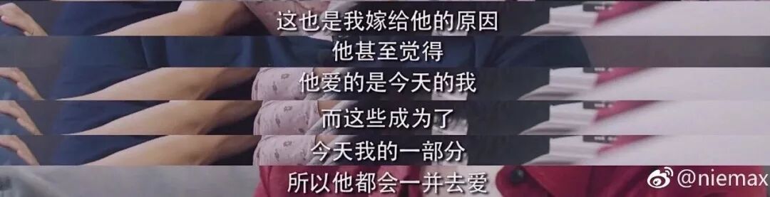 然后呢,是表态:“他爱是今天的她,过去是今天的她的一部分,所以也会一并去爱。”