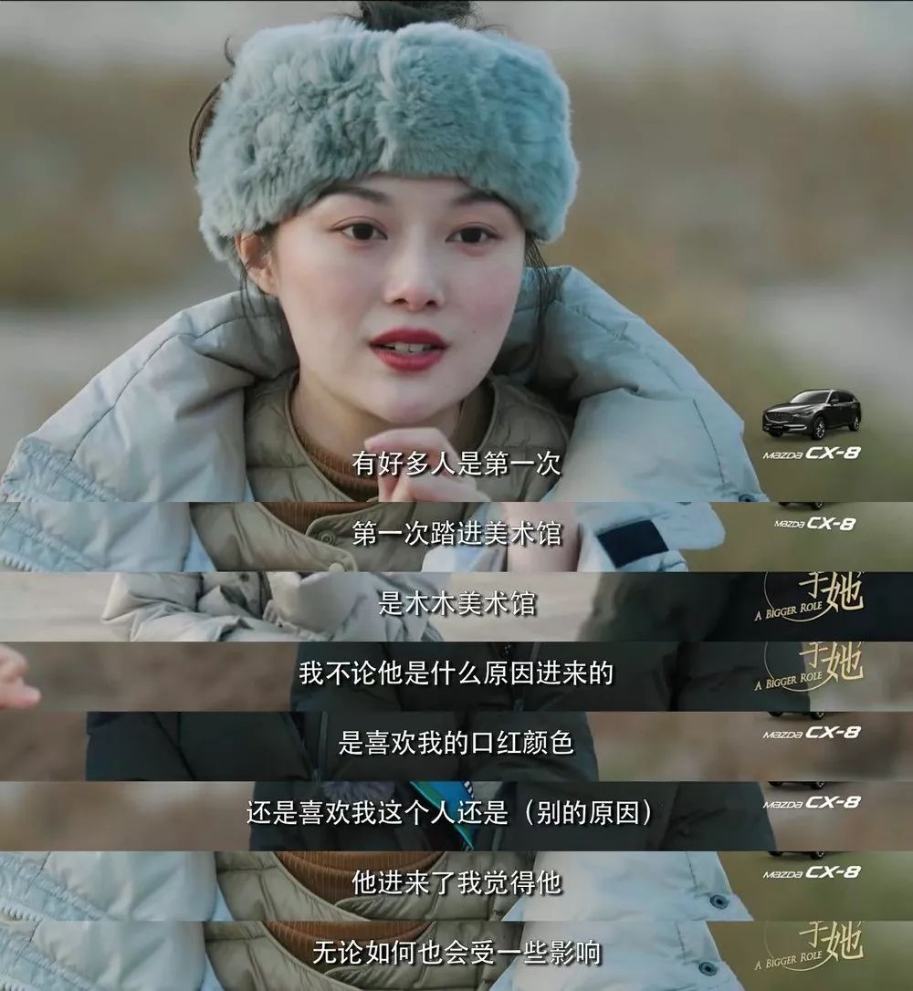 这是一个全方位证明自己,用尽全力要让人生渐入佳境的女人。她要展现和证明的东西有很多:林瀚的爱,自己的与众不同,在艺术上的造诣和悟性,以及无可挑剔的品味。