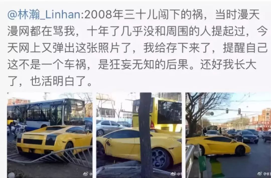 2008年,他的兰博基尼还出过车祸上过新闻,这也是他自己主动提的,大约是怕网友揭露,干脆自己主动提:
