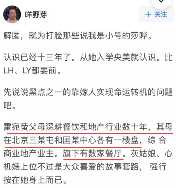 言下之意——她没有资历、没有经验、更不具备专业水平,如果说取得了一点成绩的话,那也是钱烧出来的。