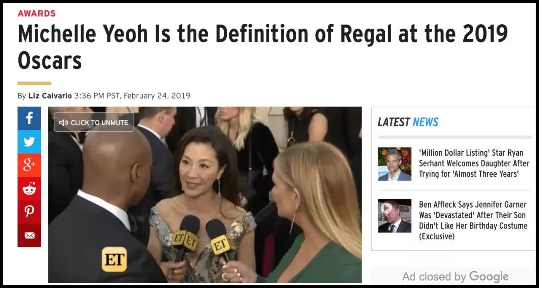面对杨紫琼这套look,西方友人是这么夸的:She is the definition of REGAL at the 2019 Oscars.(在2019届奥斯卡上,杨紫琼就是高贵的化身。)
