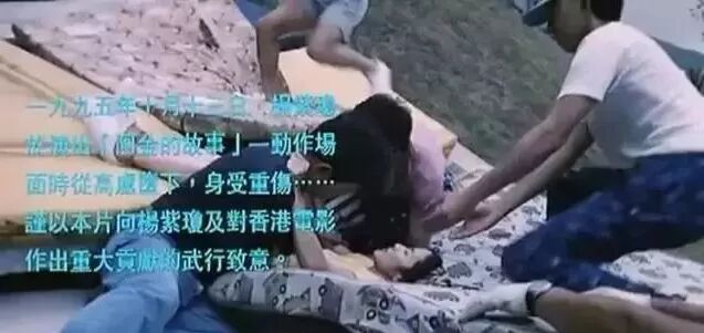 1995年在拍《阿金的故事》时,杨紫琼就不幸摔伤脊柱,险些全身瘫痪。为此,电影片尾特意加了字幕,致敬杨紫琼。
