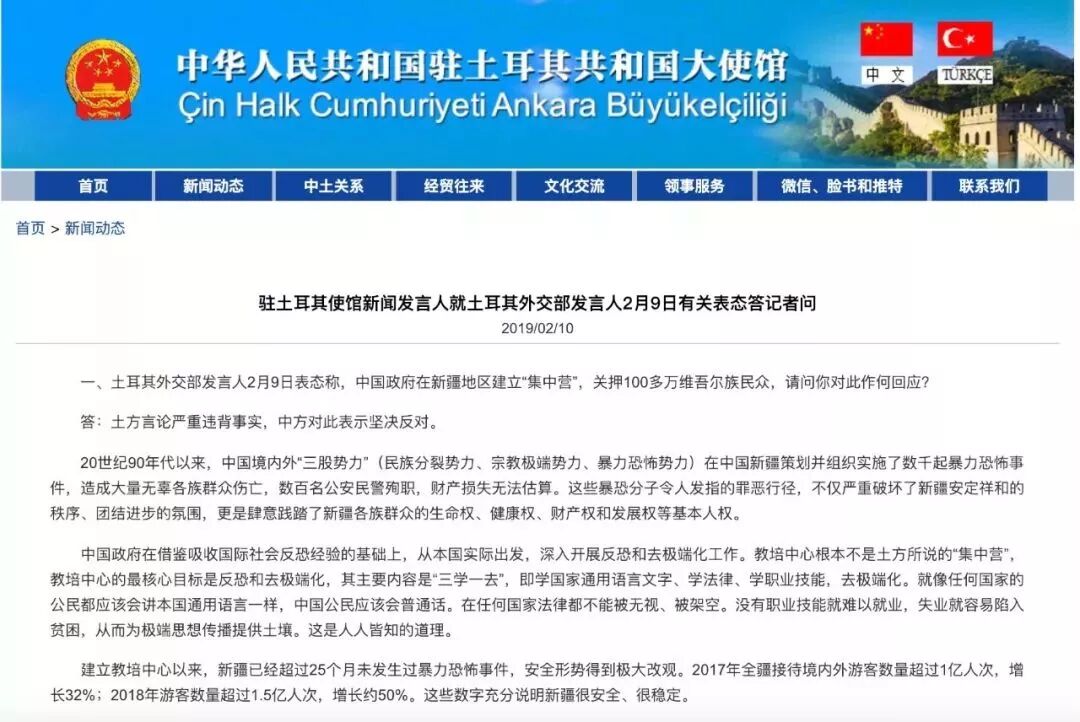 对此,中国驻土耳其使馆新闻发言人表示,上述言论与事实完全不符,中方完全不能接受。