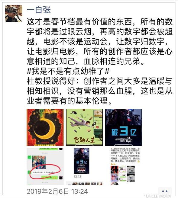 众多导演一块发朋友圈,发微博奔走相告,大力支持。