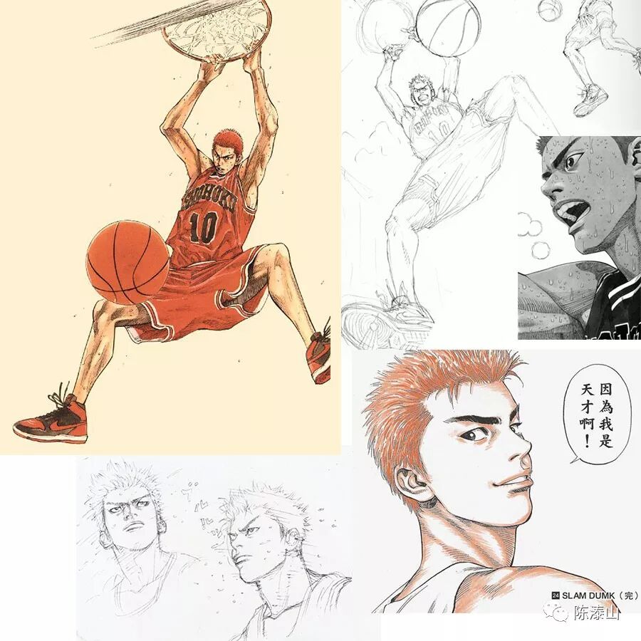 悟得门道的他又接连刻画了许多认真刻苦的拼命三郎:执着于称霸全国梦的赤木刚宪、凌晨4点还在湘北篮球馆的流川枫、每天苦练上百个三分球的阿神、从小就有篮球信念的泽北荣治……