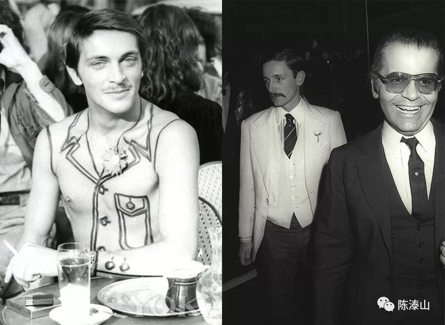 另一位是当时巴黎时尚圈的风流贵公子:Jacques de Bascher。时尚历史上没有关于他的任何记载,但他与老佛爷Karl Lagerfeld,以及Yves Saint Laurent的三角恋是当时巴黎时尚界最轰动的八卦。