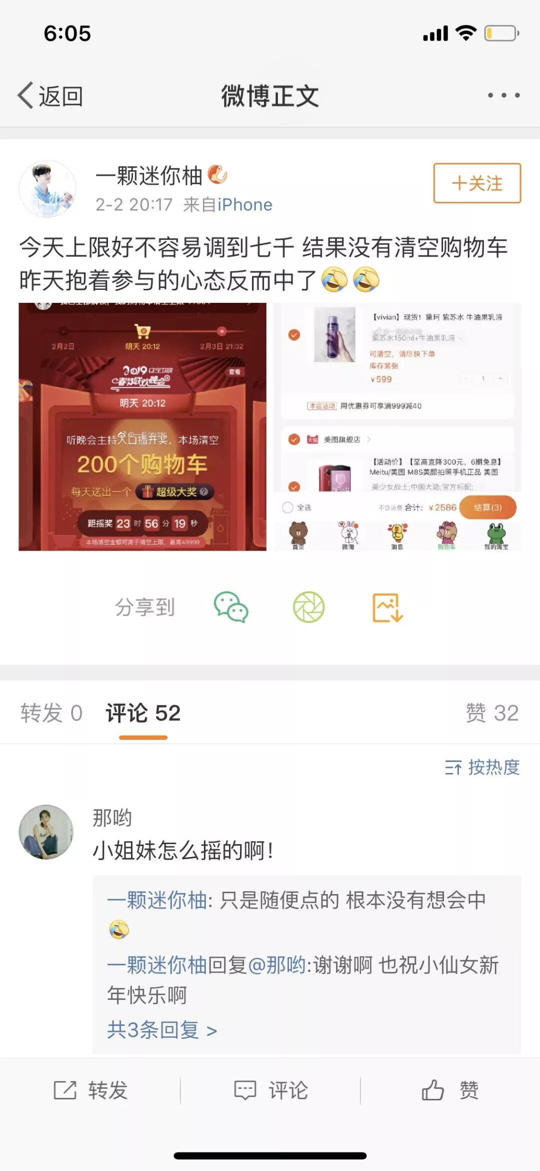 宝宝们纷纷在网上炫耀自己中了清空购物车。檬男檬女们排长队吸尽了欧气