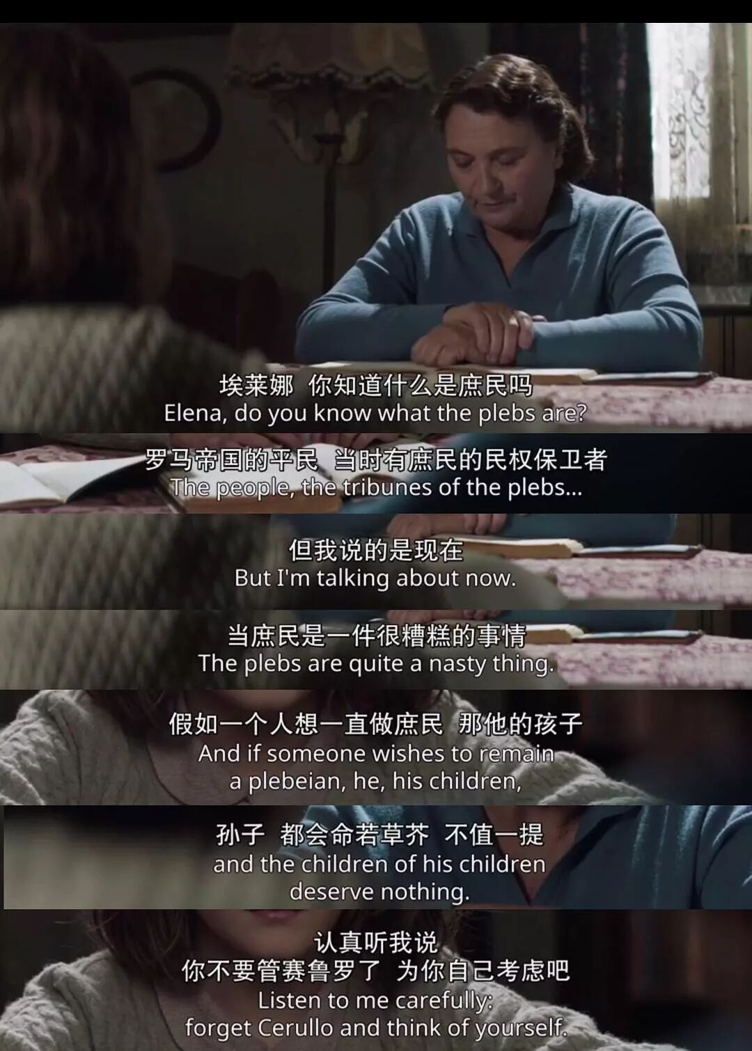 老师对莉拉的辍学感到惋惜和失望。并告诉她唯一的希望埃莱娜,一定要摆脱“庶民”行列。