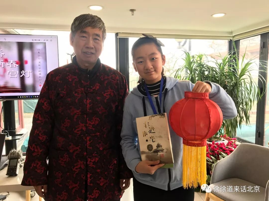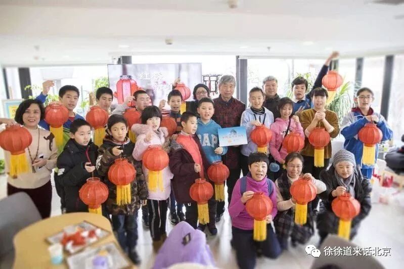 很快,两个多小时的活动就接近尾声了,喜气洋洋的红灯笼出现在的每个人的面前。大家兴奋的举着灯笼跟翟玉良老师留念。