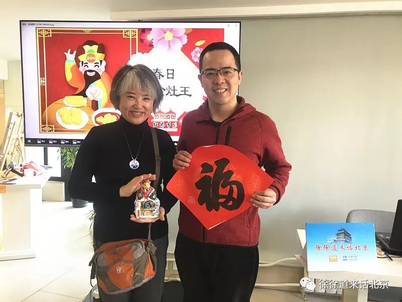 为了报答咱们的听众朋友的深情厚谊,徐老师还亲笔手书了几十张福字送给大家,还给很多参加活动的朋友手绘的灶王爷背面亲笔题字。