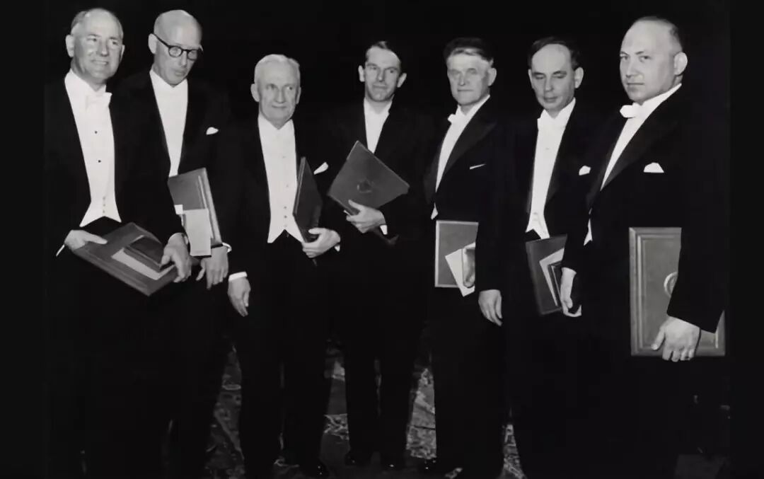 1958年诺奖得主合影,桑格(左4)年仅40岁。图片来源:achievement.org