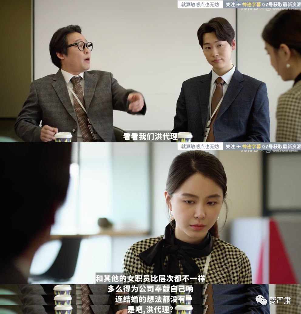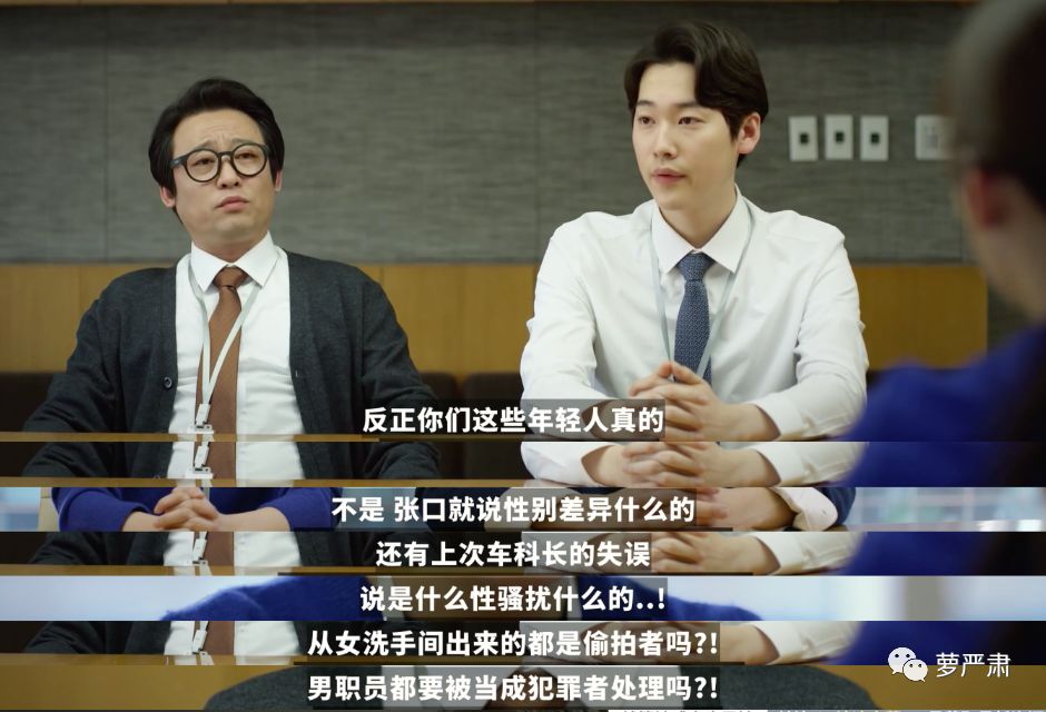 (△剧中有一位绅士的男主角,总是能从女性的角度出发来做事,愿意帮被骚扰的女同事作证。)