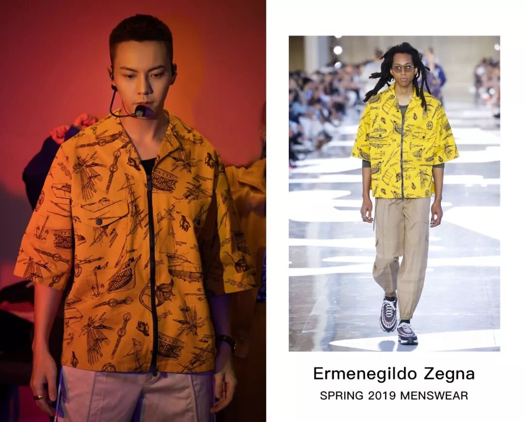 江苏卫视跨年演唱会上,亮黄色涂鸦衬衫与象牙白棉麻工装裤的组合,则童趣十足,尽显大男孩的玩味本色。