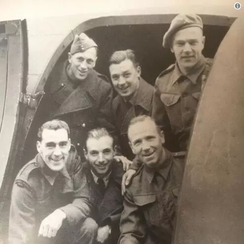 弗兰克服役时的合影,前排左起:弗兰克·斯威夫特,马修斯,巴斯比;