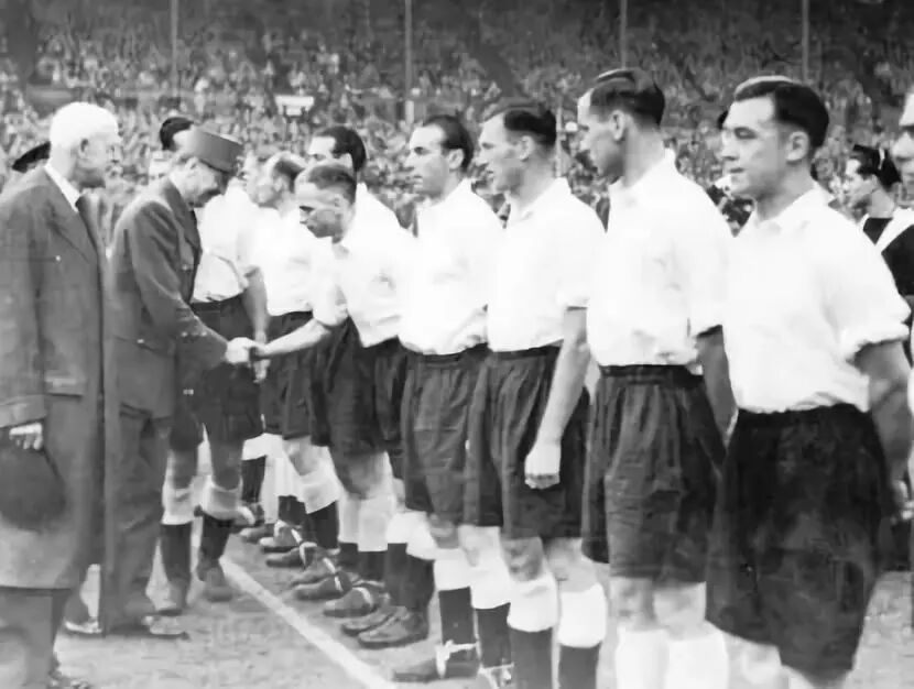 一场英格兰队同法国队的比赛,开球前弗兰克和队友接受接见