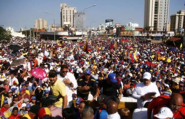 当地时间2019年1月23日,委内瑞拉数万市民在马拉开波市的主要街道上游行