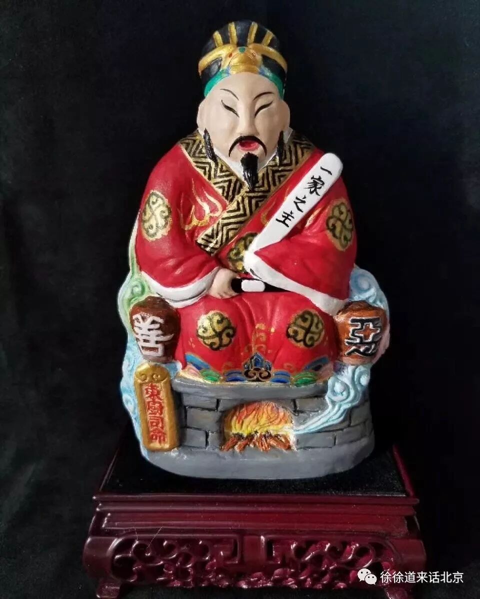 著名青年脸谱画家、民间手工艺传承人锦云轩主李军先生,为此次活动独家定制,纯手工捏制原形的独有灶王爷,按照传统神像塑形,红袍玉带,一手端带一手抱象牙朝笏,坐下灶台,起云烟,左右彩云托“善恶”两个罐子,金云牌写“东厨司命”。