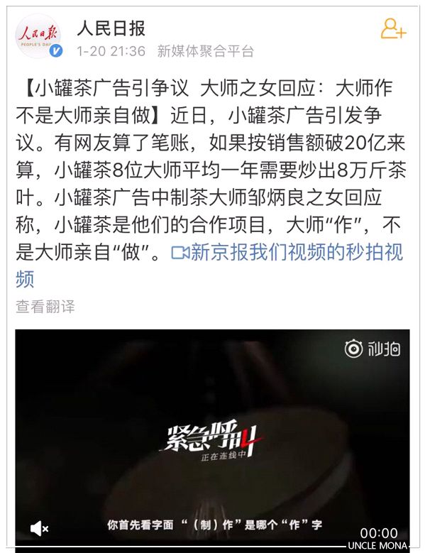 而小罐茶发出的官方声明是这样说的: